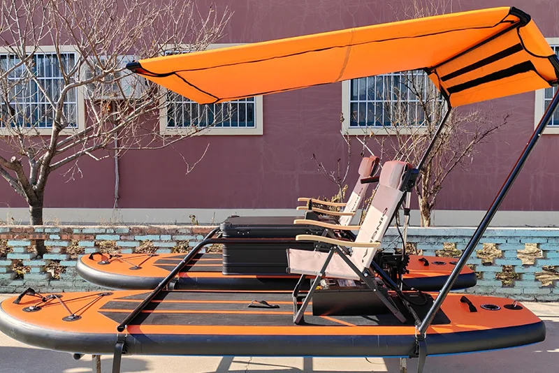 1. Katamaran jacht jacht Unikalny projekt: - Lekkie materiały PVC (podkładka druciana) Rada surfingowa z ratą aluminiową lub stalową ramą stalową. Które napędzają stabilność i manewrowalność na wodzie. Ten nadmuchiwany katamaran może usprawnić kształt zmniejsza wodę.